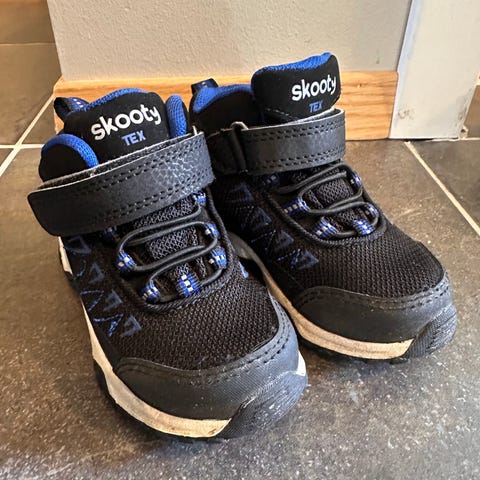 Vanntette sko med borrelås og høy ankel. Perfekte sko til overgangen vinter/vår og høst/vinter. Se bilder for detaljer