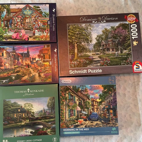 Ravensburger puslespill med 1500 brikker per eske. Kjøpt ny og kun puslet en gang. Ingen mangler. Kostet 499kr nytt. Selges for 300 per puslespill eller 1000kr samlet