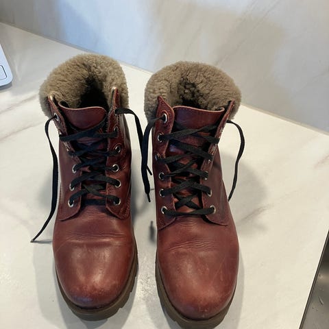 Face it vinterstøvler i størrelse 40. Støvlene er i svart materiale med grov struktur og har glidelås på siden for enkel av- og påkledning. Innvendig er de helfôret med mykt, lyst fôr som gir ekstra varme. Sålen er i gummi med riflet mønster. Passer som varme og praktiske vintersko i hverdagen.