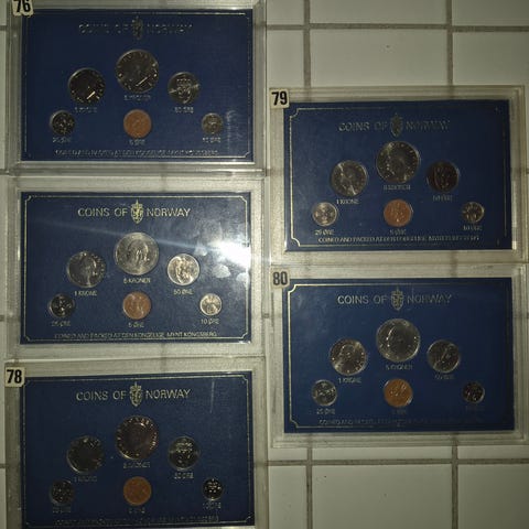 5 blåe myntsett. 1978 og 4 x 1980