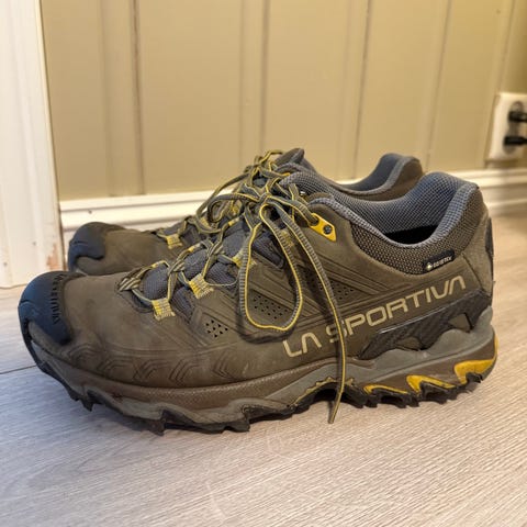 La Sportiva tursko i størrelse 39. Halvhøye tursko egnet for fotturer, med snøring foran og kraftig yttersåle med grovt mønster for godt grep. Skoene har overdel i tekstil og syntetisk materiale i blå/grønne nyanser med svarte detaljer. Passer til fotturer og annen bruk der det er behov for stabile og støttende sko.