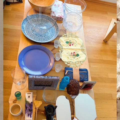 Det er også med flere potter og vaser i keramikk i forskjellige farger som grønn, gul og mørk grå, samt enkelte glassvaser. Produktene kan brukes som telysholdere, lyslykter, små vaser eller dekorative elementer på bord, vinduskarm eller hylle.