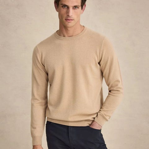 Barbour genser i ull for herre i størrelse M. Genseren har rund hals med ribbestrikket kant, samt ribbestrikkede mansjetter og linning. Fargen er gul/oker. Diskré Barbour-logo brodert på brystet. Passer til hverdagsbruk og som mellomlag på kjøligere dager.