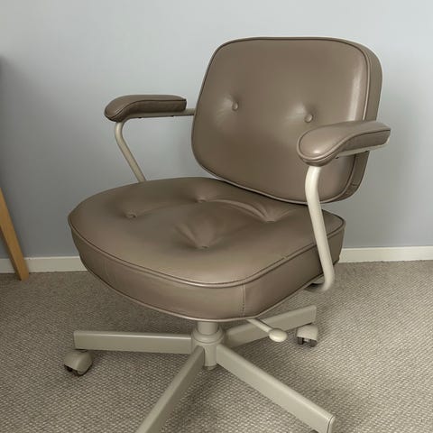 Kjøpt ny hos IKEA i august 2022. Brukt på hjemmekontor frem til august 2025 – ikke daglig bruk. Stolen er i god stand uten rifter eller synlige skader.