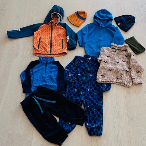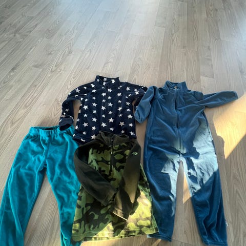 Yttertøy til gutt i str.98 og 104. Inneholder softshelljakke fra Reflex i str.98, to fleecegensere fra Skogstad og Bergens i str.104. To fleecebukser i str 4 år. Legger ved tre ullgensere fra Pierre Robert som er godt brukt, hull i disse forekommer.