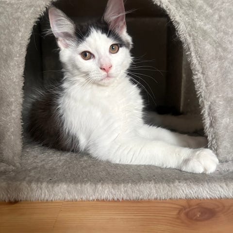 NO*Menirt's Orion er en malende, leken og gøyal gutt som er der det skjer. Elsker å være med på alt lek, rydding og kontorarbeid. Han har allerede bikket 2kg, og vetrinær synes han var en svært hyggelig katt ❤️