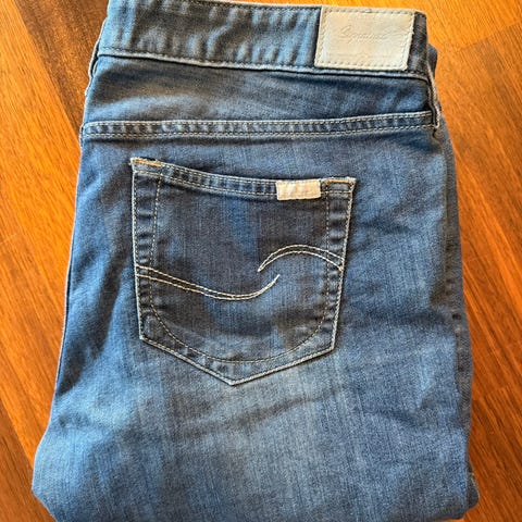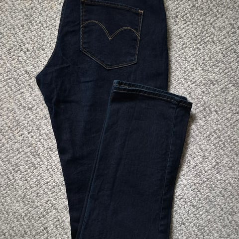 Levi's 520 jeans i blå denim. Buksen er laget av bomull og er i dame størrelse L med livvidde W32. Klassisk femlommers modell med glidelås/gylf og knapp i livet, samt baklommer med typisk Levi's-søm og lærpatch i linningen bak. Passer til hverdagsbruk og kan kombineres med ulike topper og sko for et avslappet uttrykk. Er lagt opp til å passe i beina, jeg er 165