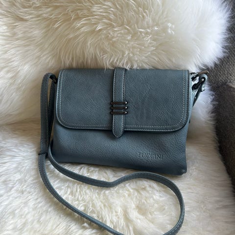 Clutch nærmest ubrukt. 18 x 27 cm m glidelås inni og nøkkelfeste. Kan bæres uten remmer, eller m håndleddstropp el den brede eller tynne crossbodystroppen