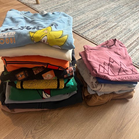 Bukser og gensere, superhelt genser med spidermann, hulken blant annet.
