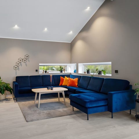 Flavio hjørnesofa fra Skeidar. Mål: Lengde sjeselongdel (høyre) 213 cm. Lengde sofa (venstre) 294 cm.
