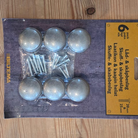Selger en pakke med 10 ubrukte knotter til skuffer og skap. Kommer med skruer str m3 og ca 25mm lang.