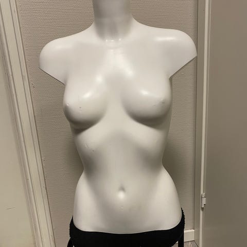 sittende utstillingsdukke dame svart
