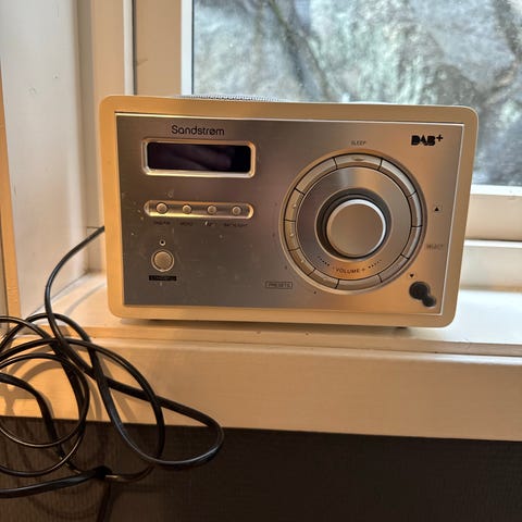 En Sangean Bordradio med DAB+ og Bluetooth i hvit utførelse som fungerer som det skal uten adapteren/ ledning
