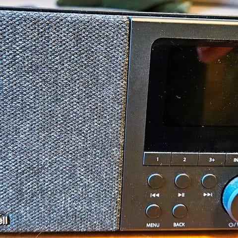 Radioen har innebygd DAB/DAB+ og FM-mottaker, med digital fargeskjerm som viser kanal- og programinformasjon. På fronten finnes høyttaler, volumkontroll og flere knapper for kanalvalg og forhåndsinnstillinger.