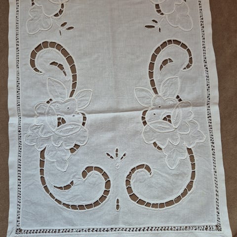 83x85 cm. Hvit. Engelsk broderi.