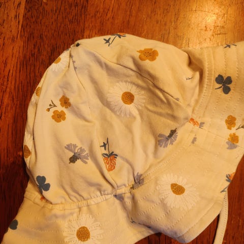 Helt nye vårluer med brem, sydd av meg.