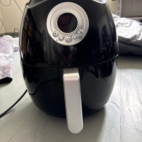 Apparatet er en varmluftsfrityr som kan brukes til tilberedning av ulike typer mat med lite eller ingen olje. Den har frontåpning med gjennomsiktig dør, og kontrollpanel på toppen.
