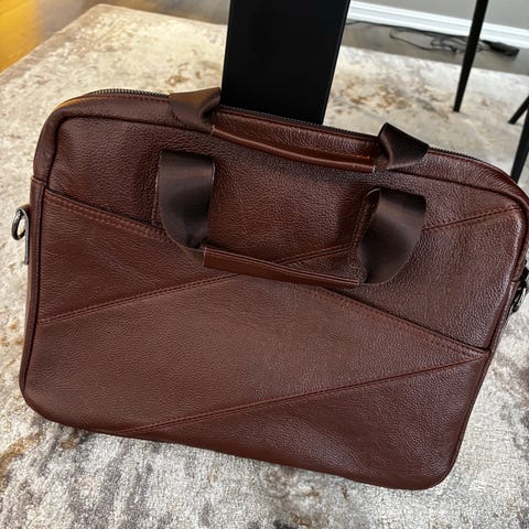 Splitter ny ryggsekk for menn. En gave som ikke falt i smak hos kjæresten. Lappen er fortsatt på. Med ekte skinn detaljer.