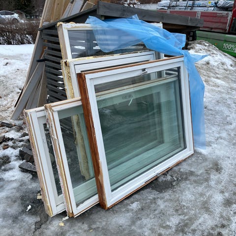 Egnet til hytte eller andre bygg der man trenger ekstra vinduer eller utskiftning av eksisterende vinduer. Hel og fin. Må skrape bort litt byggeskum.