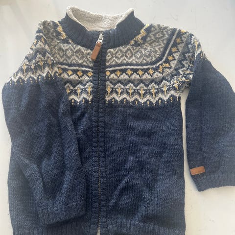 Name it jakke barn str. 98 grå og blå merinoull