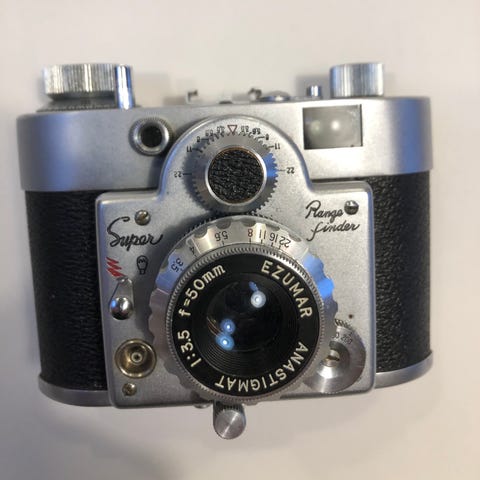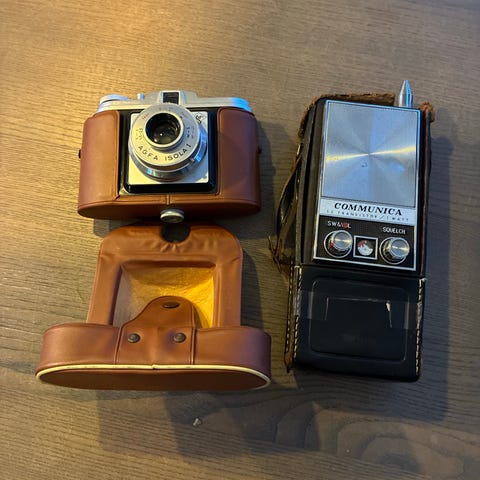 Gammelt ca. 1953 exacta kamera m 2 ekstra linser og utstyr