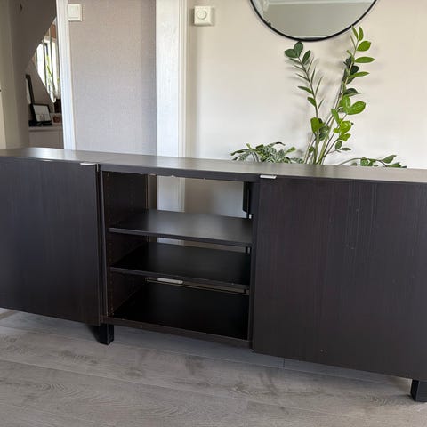 Skjenken er pent brukt og i god stand. Praktisk med god oppbevaringsplass og passer fint både i stue, gang eller spisestue.
