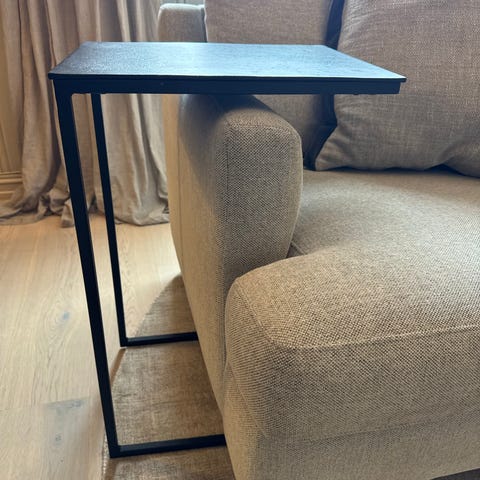 Et minimalistisk og funksjonelt bord som passer godt ved sofa, lenestol eller som fleksibelt sidebord i stue eller kontor. Kombinasjonen av røkt eik og sort fot gir et varmt og moderne uttrykk.