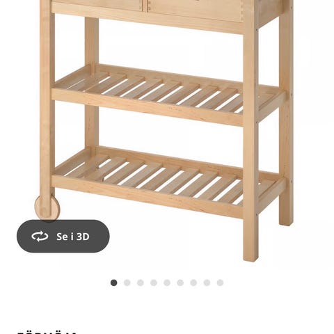 IKEA BROR trillebord med robust stålramme og hyller i furukryssfiner. Bordet har grågrønn farge og måler ca. 85x55 cm. Utstyrt med fire hjul for enkel forflytning, hvorav to kan låses for stabilitet. To åpne hyller gir god oppbevaringsplass. Egnet som arbeidsbord eller oppbevaringsløsning i for eksempel garasje, bod eller hobbyrom.