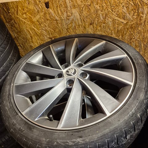 Skoda felger selges et slag i den ene felger ellers fine. 2 av dekkene er fine mens de 2 andre er dårlig