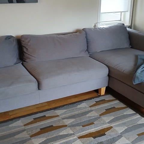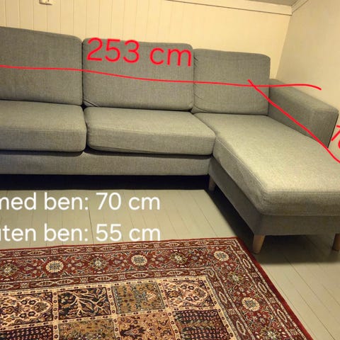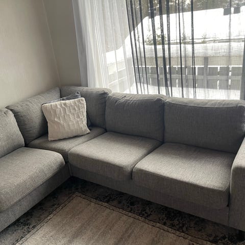 Sofaen er like hel og ingen skader og enkel og demontere og montere. Kjøper må hente selv.