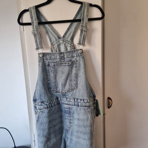 H&M Denim selekjole for dame i størrelse 36. Kjolen er laget i denim og har blå vask. Modellen har justerbare seler, brystlomme foran, sidelommer og baklommer. Passer til hverdagsbruk og kan kombineres med ulike topper under etter behov og sesong.