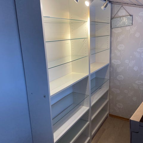 Vi har en del hvite Billy bokhyller som gis bort mot henting. Noen er pent brukt uten særlig merker og noen er litt mer synlig brukt, med et par merker. To har også kappet hull til el-støpsel på bakplaten. Vil oppdatere her etter som folk henter.