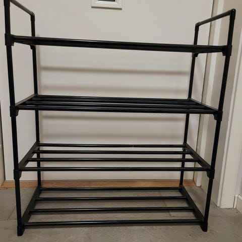Hals Skohylle fra Jysk med 4 hyller i fargen svart. Stål.