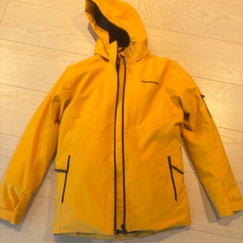 Jakke og bukse i tofarget gul og svart. Sett med jakke med hette og full glidelås foran, samt matchende bukse. Jakken har flere lommer med glidelås og justering ved ermer og nederkant. Buksen har beltehemper, glidelås og knapp i livet, samt flere lommer med glidelås. Passer til bruk i skibakken og annen vinteraktivitet.