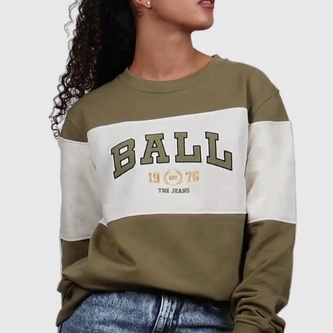 BALL collegegenser for dame i størrelse S. Genseren er grå og laget av bomull. Klassisk collegegenser med trykket BALL-logo og tall på brystet. Passer til hverdagsbruk og fritid.