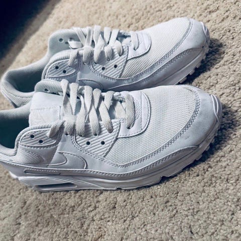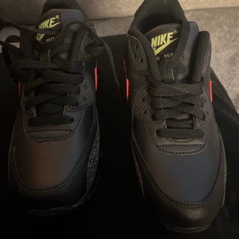 Nike Air Max joggesko i størrelse 44. Modellen er helsvart med overdel i tekstil og syntetisk materiale, samt gummisåle med synlig Air-demping i hælen. Klassisk snøring og polstret hælkappe for bedre komfort. Passer som hverdagssko eller fritidssko.