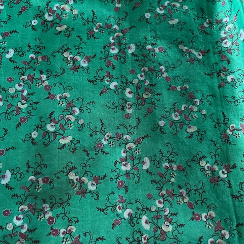 Blomstrete stoff 100%silkei grønn farge med små blomster i kontrastfarger.