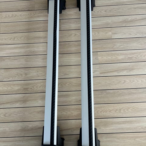 Volvo takstativ i sølv og svart med integrerte føtter og låsbare endestykker. Egnet for montering på bilens tak for transport av for eksempel takboks, ski- eller sykkelstativ. Leveres som et sett med to bøyler og bruksanvisning. Brukt på XC 60 2022 mod.