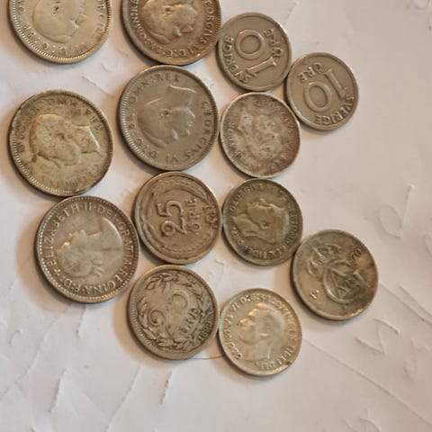 10 stk flotte sølv mynter