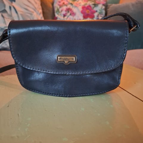 Strøken skandinavisk skatt! Mørkeblå vintage skinnveske fra finske Honko