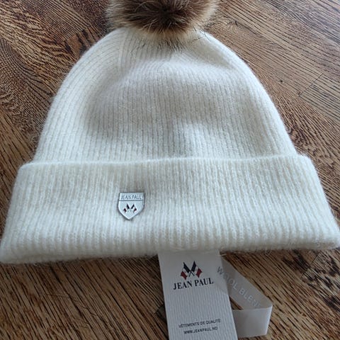Selger en eksklusiv og ubrukt lue fra Feldur Verkstæði (Island). Luen er i myk ull og har stor, ekte pelsdusk.