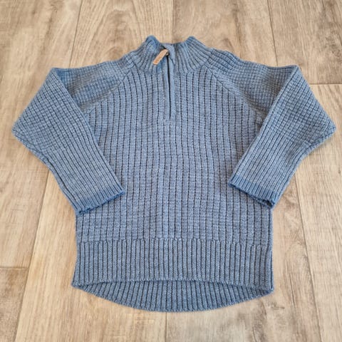 Stormberg ullgenser for barn i størrelse 92, unisex. Genseren er i grå ull med høy hals og glidelås i front. Ribbestrikket kant nederst, ved ermer og i hals gir bedre passform. Egnet som mellomlag eller som varm genser til hverdagsbruk for både gutter og jenter.