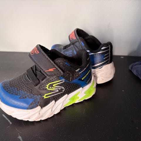 Brukt to - tre ganger. Fremstår som nye. Det ene sålen har lys når man går den andre har aldri virket.