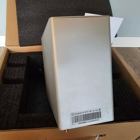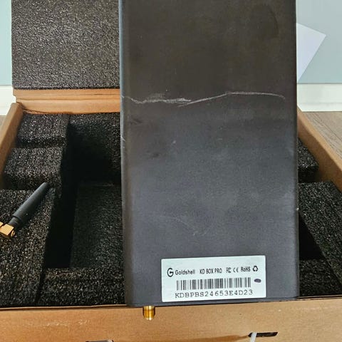 Goldshell KD LITE kryptominer i originaleske. Enheten har metallkabinett med integrert strømforsyning, flere kjølevifter i front og bak, samt nettverkstilkobling via Ethernet-port på toppen. Leveres med strømkabel slik det vises på bildene.