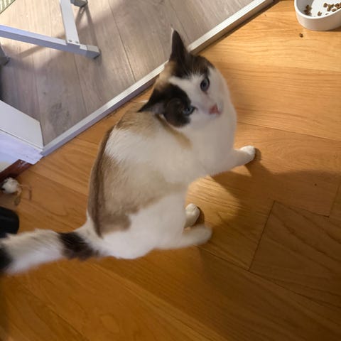 Katten er snill, trygg og liker å være sammen med folk. Leker litt, men er også glad i å slappe av. Passer fint i et rolig hjem.