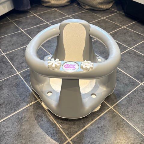 Praktisk badestol med sugekoppføtter og 360° rotering.