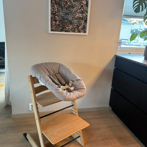 Selger pent brukt Stokke newborn set til tripp trapp stol. Det følger med en lekebøyle som kan festes på stolen, perfekt til å henge opp favorittleken.