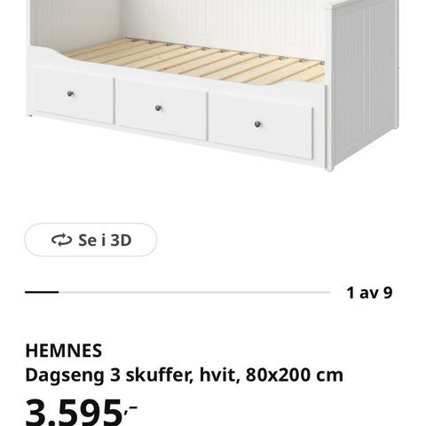 IKEA HEMNES dagseng i grå utførelse. Selges for kr 800,- det følger med en madrass.