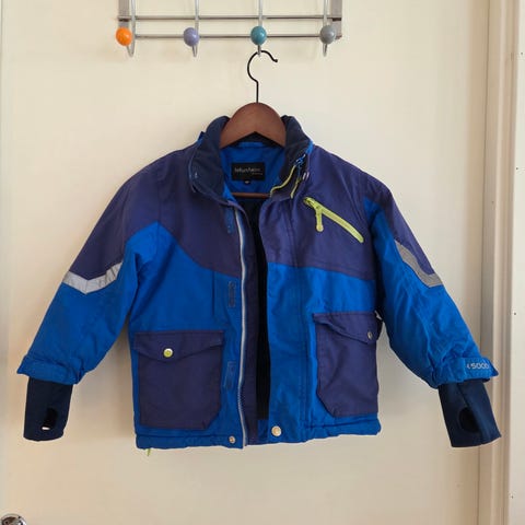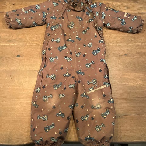 Klespakke med forskjellig yttertøy til barn størrelse 98 selges. Her er regntøy med to bukser, fôret regntøy, vinterjakke, fleecedress, parkdress.