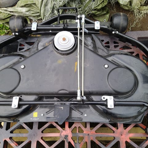 Klippeaggregat til gressklipper med to knivhus og tilhørende vaiere. Egnet som reservedel eller bytteaggregat til kompatibel sitteklipper eller gressklipper. Merke, modell, bredde og eksakte mål er ikke oppgitt og bør kontrolleres mot egen maskin før bruk.